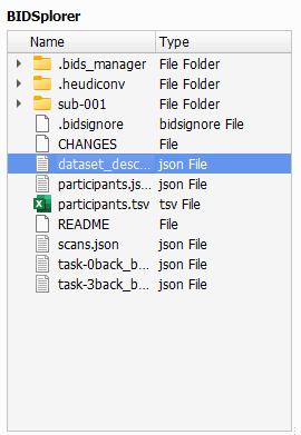 Once you’ve loaded your dataset, you can use BIDSplorer to easily navigate through your dataset subfolders and view different type of files and sequence types.