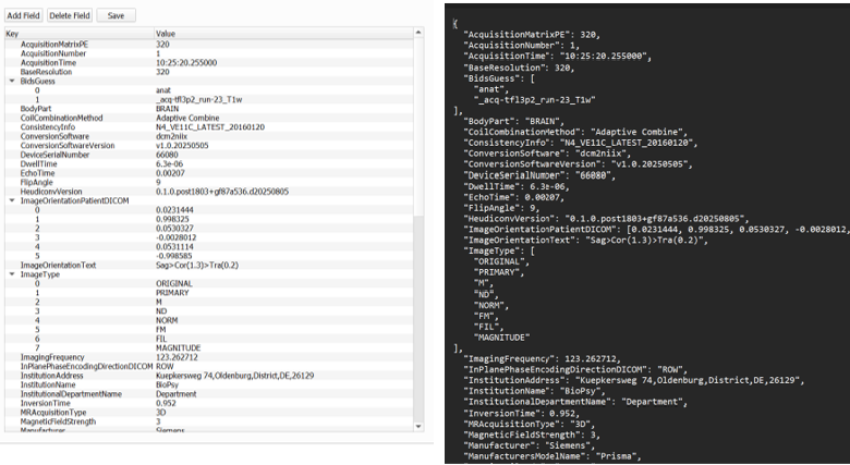 Metadata and Sidecars: Double-click on the json and tsv files to open them, review them and modify entries.