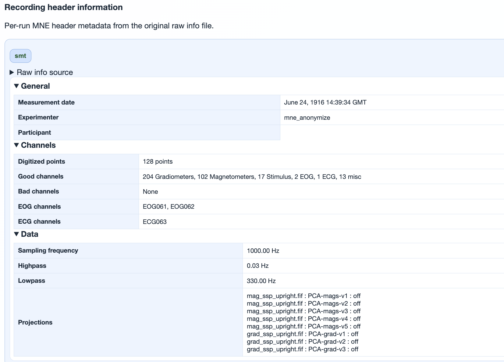 Raw information (recording metadata)#