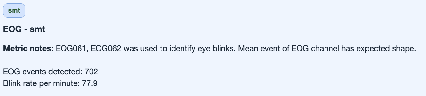 QC summary -> EOG reports affected-channel counts and percentages (task/run-matched through GQI rows when available).