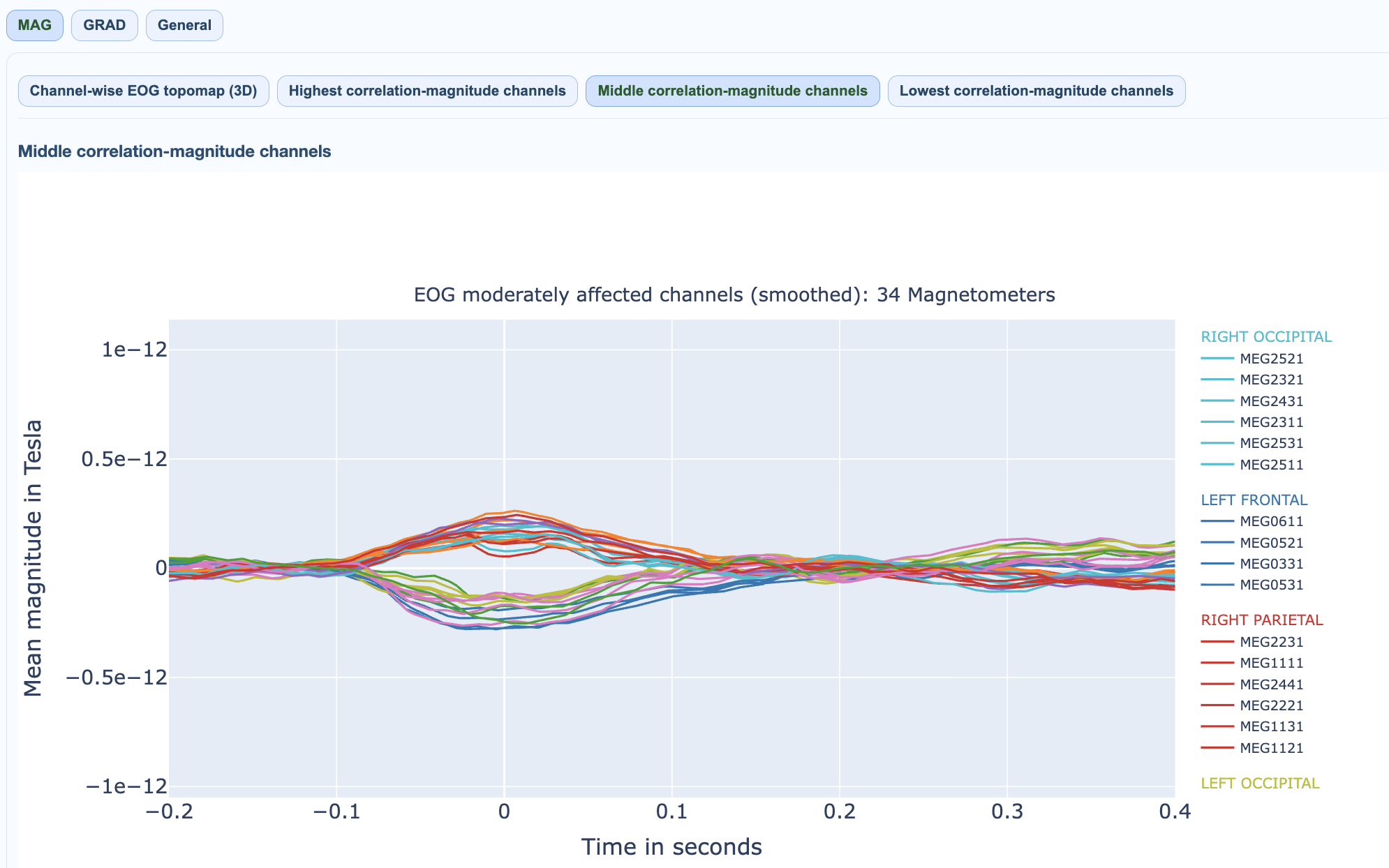 EOG contamination typically shows strongest effects in frontal sensors. The QC summary provides affected-channel counts and percentages matched to GQI rows when available.